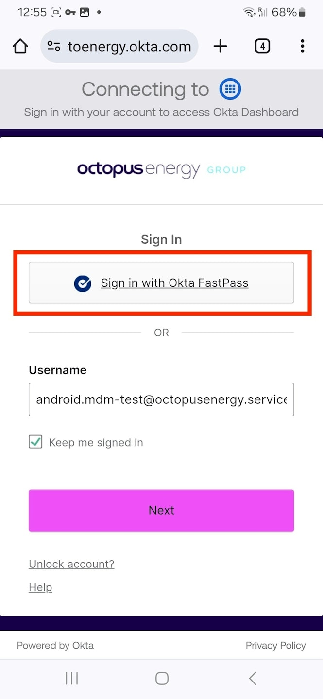 ⏩ Asegúrate de que Okta Fastpass esté activado