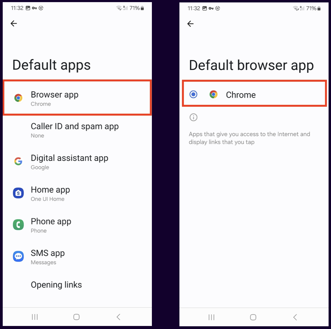 3. Pulsa en "Aplicación del navegador" y selecciona Chrome.