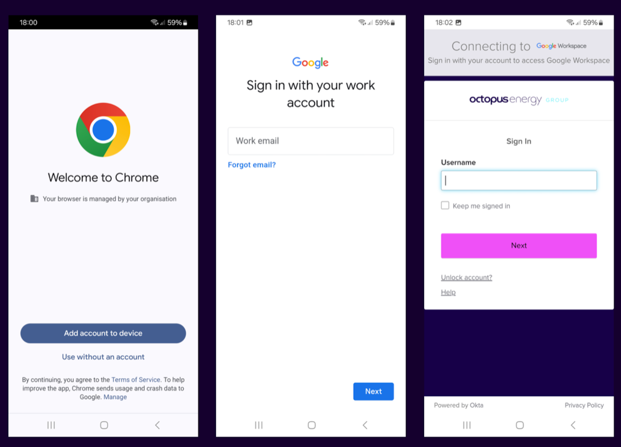 Utiliza tu nombre de usuario y contraseña de Okta para iniciar sesión.